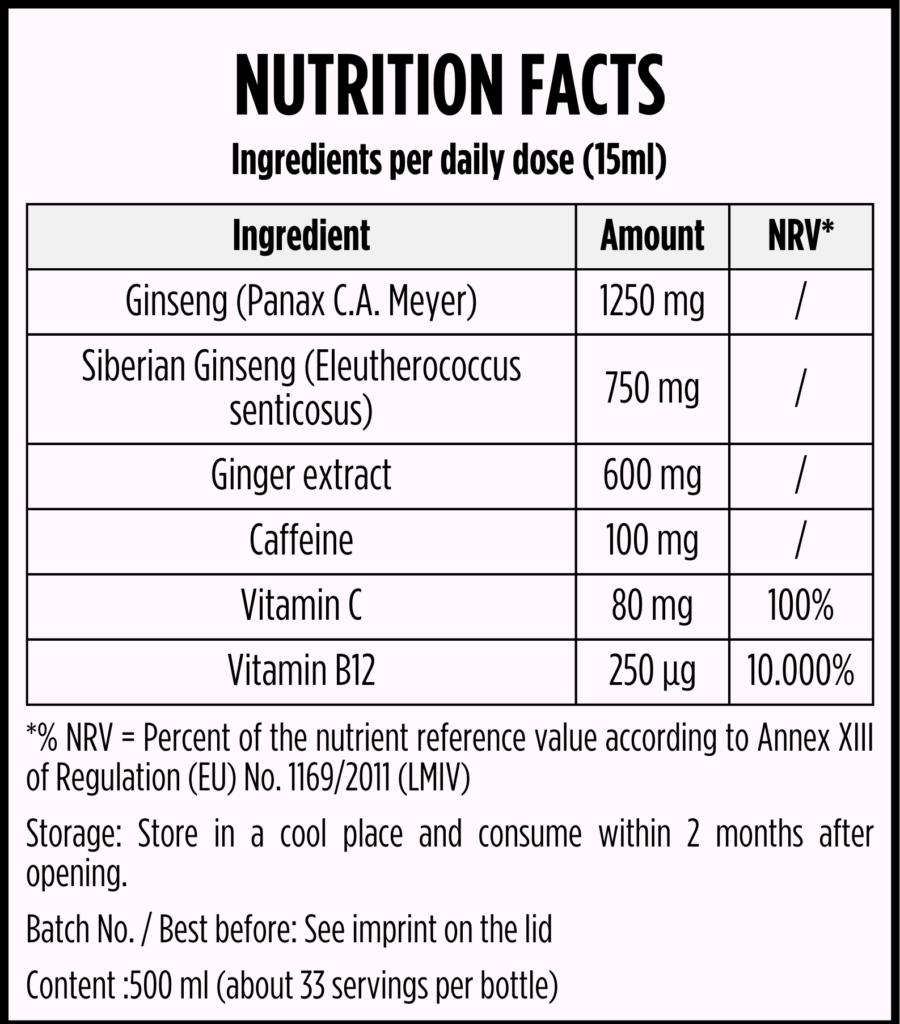 Ginseng Power Plus+ is proudly manufactured in Germany in a facility that is GMP and ISO 22000 certified. This ensures the highest standards of safety, hygiene, and quality control.